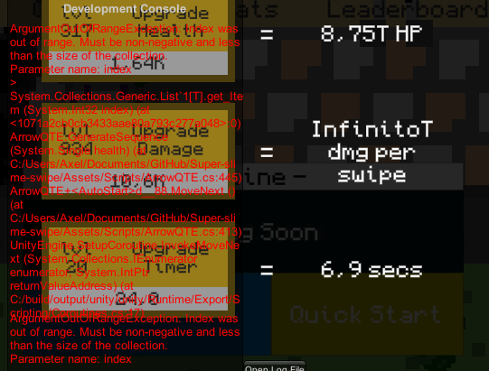 Hey there! I'm Juan, the person who has (at the moment) the highest score in this game. I was farming it a bit when I found a problem: I reached "infinite" damage, so the game stopped working properly. It shows red messages on the debug console and the rounds won't start because the game can't do its calculations. Any solution? (Playing on the normal Windows version)